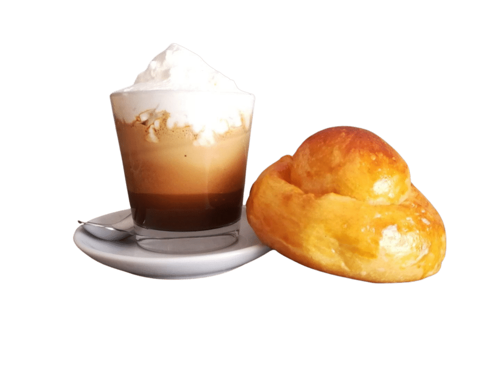 | una tazza di caffè | un cornetto vuoto | un cornetto salato | una spremuta d’arancia |