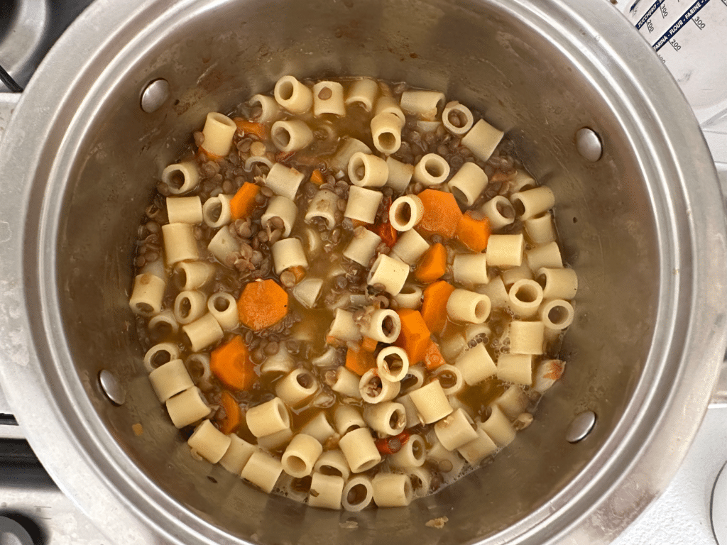 Nagyon népszerű fogás a “pasta e lenticchie”, azaz a lencsés tészta, mi is sokszor készítjük. Hamar megvan, egészséges és tápláló.