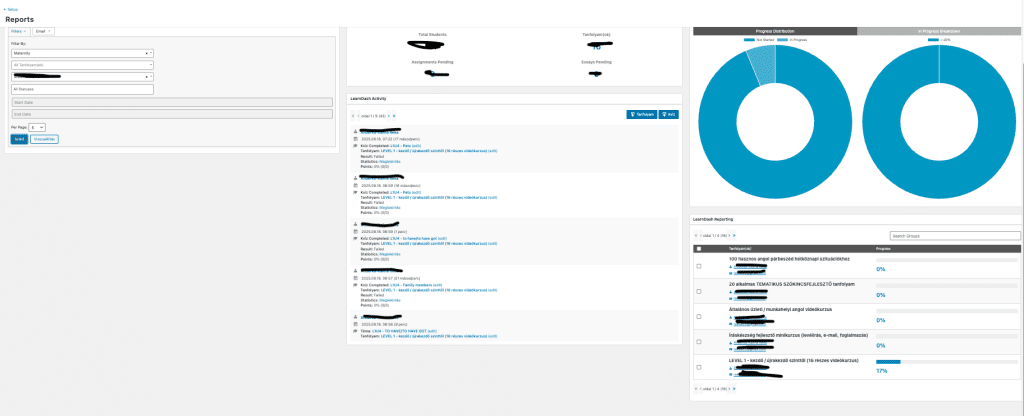 A céges csoportoknál a megrendelő által kijelölt koordináló személy (általában a HR vagy a Learning and Development egy munkatársa) egy külön, a számára létrehozott felületen látja percre lebontva a munkatársak tevékenységét, tehát nagyon pontosan nyomon követhető (így számon is kérhető) az egyes dolgozók aktivitása és teljesítménye grafikonokkal és jelentésekkel kiegészítve.