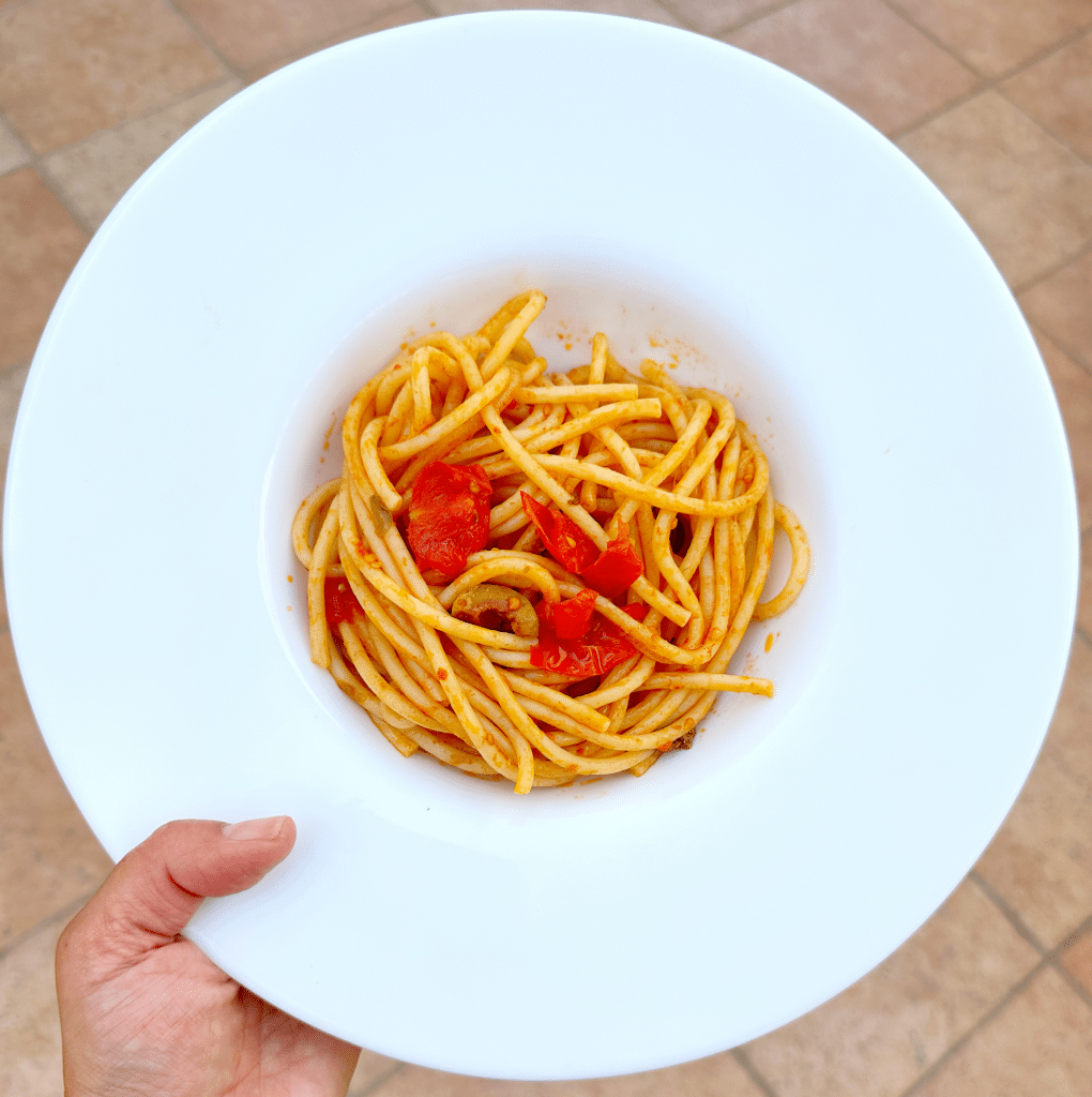 Nonna Graziella Altamura városából (Puglia9 ebben a videóban spaghetti alla San Giuvanidd (San Giovannino) tésztát készít. Nézzétek meg, és kövessétek őket! Van benne szardella (acciughe) de NINCS hal íze tőle, és a zöld olívabogyónak és a kapribogyónak sem vesz át az ízét (sokan nem szeretik ezeket). A végeredmény egy nagyon finom paradicsomos tészta!